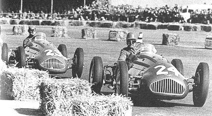 Here below he is racing his Alta in the 1950 British Grand Prix at Silverstone (the very first World Championship F1 race); he is following Geoffrey Crossley also in an Alta.